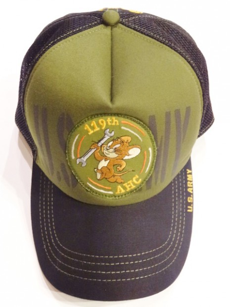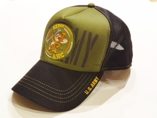 【TOYS McCOY】 ヴェトナム戦争でベルUH-1Bを運用し、空輸小隊と武装護衛小隊を持ち、(ゲイターズ)の愛称で呼ばれた第119航空中隊。彼らの任務を支える整備兵をイメージしてメッシュキャップをモデライズしました。整備兵の結束を込めた通称(スワンプ・ラッツ)のパッチをジュリーに置き換えた愛嬌のあるパッチが中央に配されています。U.S.ARMYらしい配色なので夏のアウトドアシーンのコーディネイトに好相性のアクセサリーです。