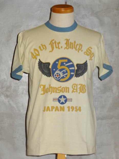 【TOYS McCOY】 1963年に自衛隊へ引き渡されるまで、ジョンソン空軍基地として第5航空軍の本拠地だった入間基地。特に朝鮮戦争時は1945年から1955年にかけて第40戦闘飛行隊が駐留し、その存在感を放っていました。このTシャツは朝鮮戦争の最中に同部隊が誂えたことを仮定して、雰囲気のあるTシャツに仕上げられています。