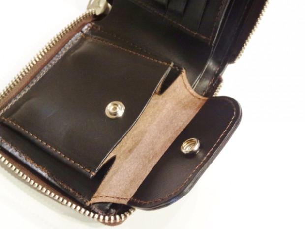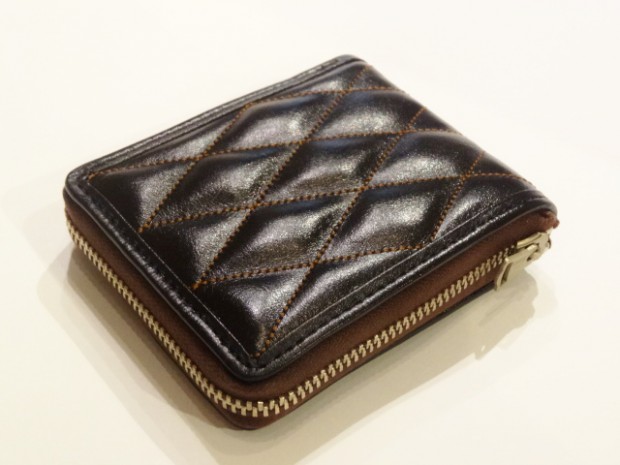 【TOYS McCOY】 上質なホースハイドを用い、外装をキルティング仕様とした2つ折りウォレット。ブラウンとブラックの2色を用意しており、それぞれにステッチカラーも異なっています。堅牢で艶やかなホースハイドの経年変化もお楽しみいただけます。