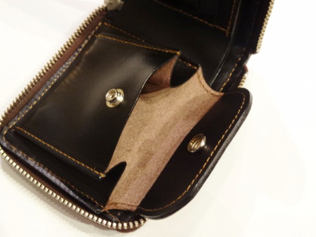 【TOYS McCOY】 上質なホースハイドを用い、外装をキルティング仕様とした2つ折りウォレット。ブラウンとブラックの2色を用意しており、それぞれにステッチカラーも異なっています。堅牢で艶やかなホースハイドの経年変化もお楽しみいただけます。