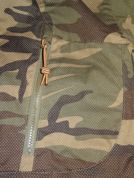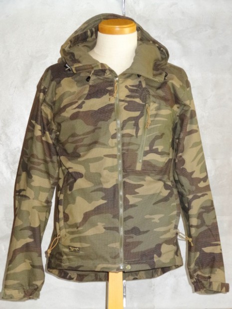 【COLIMBO】 ドビークロスの構造により、カモフラージュプリントにホワイトドットが浮かぶユニークなファブリックです。ストレッチタイプの生地により、立体的な構造と相まって非常に快適な着心地です。大型のフードや若干長めの背中等の機能性も見逃せません。様々な環境でのウェアリングが可能です。