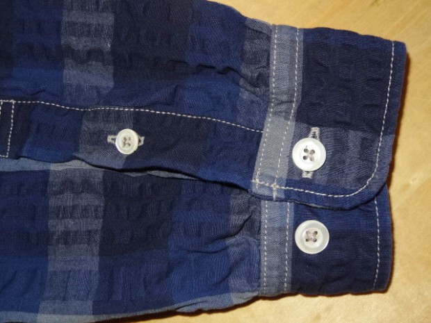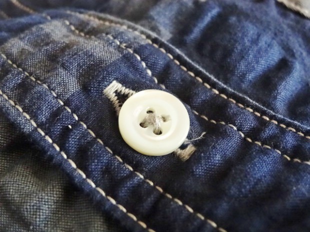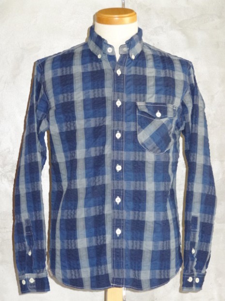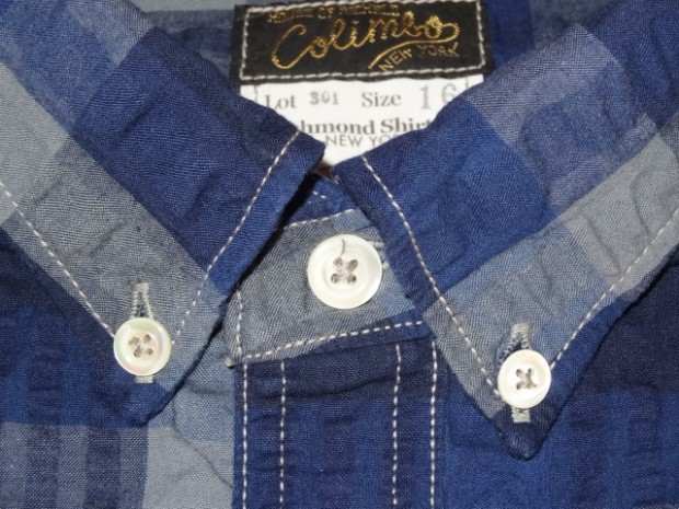【COLIMBO】 ボタンダウンシャツの起源はポロやクリケット等のスポーツシーンでの襟のばたつきを防ぐために襟を固定したことが始まりです。本製品はB/Dの特有の襟が描くカーブやその高さを吟味したパターンを使用しています。インディゴ・シアサッカー地を使用した爽やかな印象のB/Dシャツはチェック柄を合わせずに仕立てていますので程よりラフな印象を醸しています。リアルシェルボタンを使用。