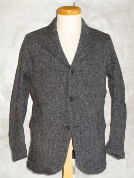 【WORKERS】 毎年好評のLounge Jacket。 肩の裏にある小さな背裏を見返しから続き物にして少しでも薄く仕上がるようにしています。背裏の形状自体もひっくり返りづらい直線的なものに。袖も描きなおしてよりバランスよくと、一見同じように見えても微調整を繰り返しています。 英国羊毛を混紡した糸で織ったウール100%のツイード。糸作りから織り・仕上げまで愛知一宮で。オー ストラリア産の羊毛だけとは違う、英国羊毛独特なハリと生地のかさがあるのが特徴。ウールには袖の通りを良くするため袖裏をつけています。 ウールは洗うとどうしても縮みます。縮ませたくない場合はドライクリーニング推奨。でも「ちょっとフィット感が足り ないな」なんて言う時には、洗濯して陰干しも自己責任で。 コーディネートはシンプルに。ジーンズはもちろん、色の合わせさえ気を付ければチノ、ピケパン、MIL-Trousers に Moonglow Trousers と、今期のパンツどれにも合わせられます。インナーはシャツが基本ですが、寒くなればそこに Cotton Sweater を重ねて。AB Plainc, USN Cotton Sweaterのようなカットソーをあわせても。 さらにアウターに風を防ぐマウンテンパーカやVentile Bal Collar Coatを着れば真冬まで対応可能。 コットン系は洗う毎に巻き縫い部分に適度にパッカリングが 出てこなれた風合いに成っていきます。ヘリンボンツイードは洗い無し。