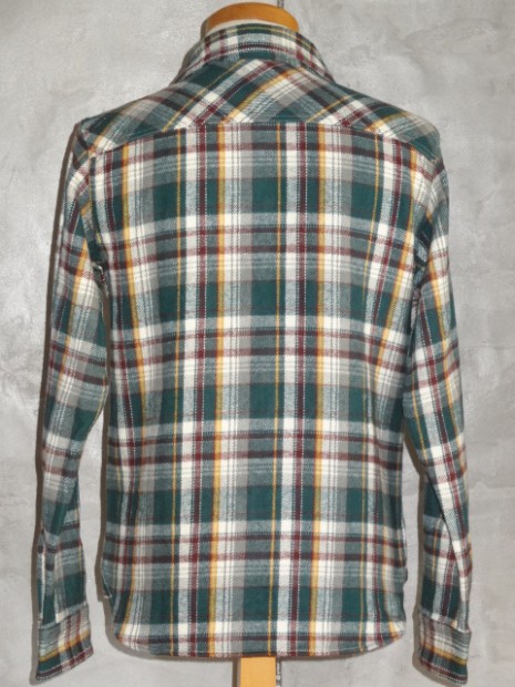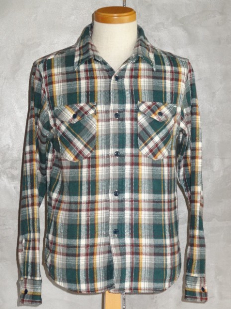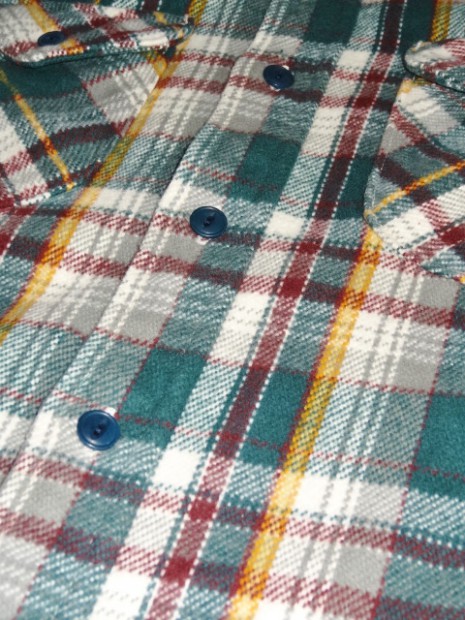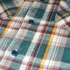 【UES】 アメリカンカジュアルの王道フランネルシャツは、手で触れただけでわかるヘビーウェイトな生地でありながらも、裏地が微起毛されているため袖を通せば身体を包み込むような肌触りも感じられます。先染めの糸は直接染料を施すことで自然に色褪せ、デニムにも引けを取らない経年変化が味わえます。 その厚手の生地を、より熟練の技術を必要とする”巻き縫い”と呼ばれる手法で縫製しています。チェーンステッチによって互いの生地を文字通り巻き込むように縫うことで、耐久性が向上。やはりワークシャツは力強くなければなりません。こちらのヘビーネルは、表面に起毛をかけ、より暖かな雰囲気を出しました。細いラインには鮮やかな色を差すことで、ベーシックながらもどこか新しい雰囲気を醸し出しています。