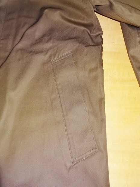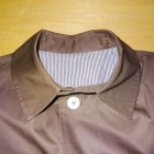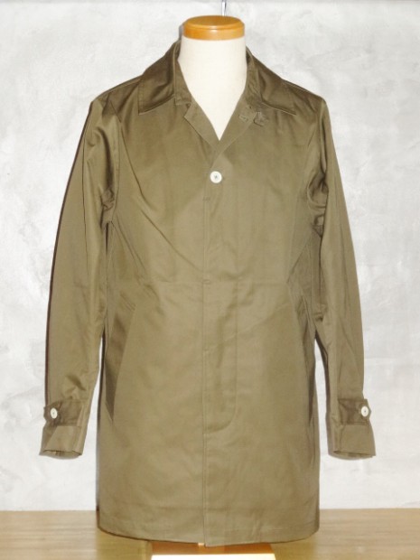 【WORKERS】 冬のコートというと、Pコート、ダッフル、チェスターフィールド。薄手で言えばトレンチもありますが、私が一番好きなのはBal Collar Coat。通称ステンカラーコートです。特徴が無い、地味、本当に忘れられがちなコートですが町を良く見てください。いい年したじいちゃんで「お、しゃれてるな」と思う人にステンカラーコートの多い事、多い事。私の祖父もバーバリーで作ったステンカラー、それもわざわざウールの物を着ていました。ちょうどサイズが同じだったので、亡くなってから祖母にもらいました。ぶっとい袖、ゆったりした肩幅・身幅で中々現代のサイズ感覚では着づらいですが、やはりコートと言えばこれだ・・・とその時も再確認しました。 素材はカーキが綾織のベンタイル。コットン100、撥水性のある生地。同じベンタイルでもRAF PARKAやMountain Parkaに使った平織とは違い綾織。こちらの方が、生地が落ちる、ドレープが出るのでコートには似合います。シンプルにシャツ、ジャケットの上に。 製品はノンウォッシュですが、着用サンプルはワンウォッシュ・天日乾燥しています。 ※ご家庭でも洗濯可能ですが、その際はネットに入れて洗ってください。はっ水性の高い生地なので、水が浸透しづらく、そのまま洗うとポケット内に水が入りポケット口が裂けることがあります。