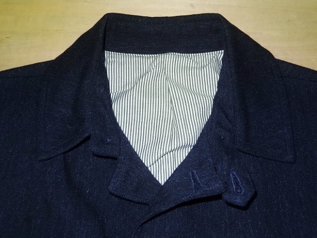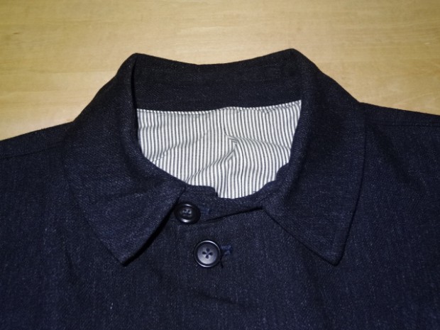 【WORKERS】 冬のコートというと、Pコート、ダッフル、チェスターフィールド。薄手で言えばトレンチもありますが、私が一番好きなのはBal Collar Coat。通称ステンカラーコートです。特徴が無い、地味、本当に忘れられがちなコートですが町を良く見てください。いい年したじいちゃんで「お、しゃれてるな」と思う人にステンカラーコートの多い事、多い事。私の祖父もバーバリーで作ったステンカラー、それもわざわざウールの物を着ていました。ちょうどサイズが同じだったので、亡くなってから祖母にもらいました。ぶっとい袖、ゆったりした肩幅・身幅で中々現代のサイズ感覚では着づらいですが、やはりコートと言えばこれだ・・・とその時も再確認しました。 素材はウールコットンサージ、こちらは厚く、硬くなので保温性は高い。これを洗いこんでくしゃっとなったところに、中はシャツ+セーターをさらっと着る。かっこいいです・・・がちょっと重いです。