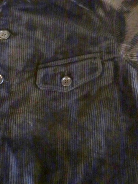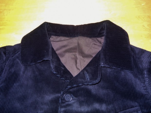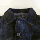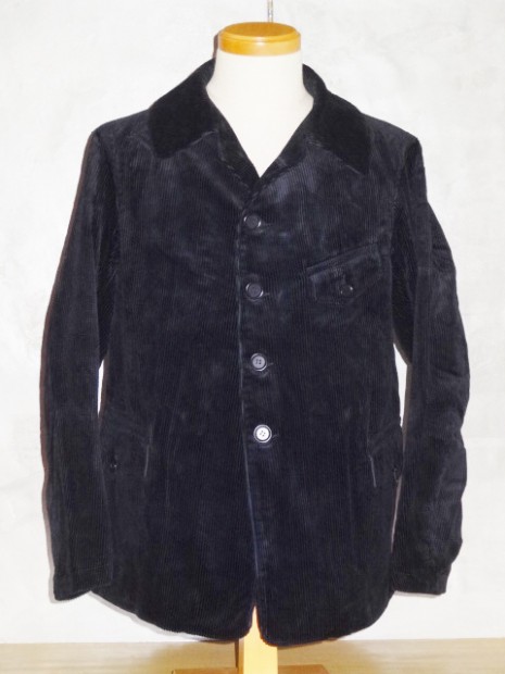 【WORKERS】 2015年年末、大阪のCockeyCrewStoreさんで買ったコーデュロイのハンティングジャケット。おそらくフランスもので、重い目の詰まったコーデュロイ。ちょっと重いけど、久しぶりにこういうがっちりした服も着てみたいと思い、正月中着ていました。確かにかっこいい!でもやっぱり重いだけじゃなく硬い!中を見てみようと解体してみると、芯やら肩パットやらいろいろな副資材が入っています。 そんな時、別品番のBoa Jacketの表生地を探している中でこの高密度コーデュロイを見つけました。「硬すぎ、重すぎてBoaJacketには向かないなぁ・・・」なんて思っている時に「そうだ、この重さ・硬さはあの古着のジャケットデザインには合うのでは?」と思い形にしました。古着で気になった硬すぎる部分、芯や肩パットは省く。ただ、らしさを残したい部分では芯を使っています。それが襟裏で、ここに別布を使うことで薄く仕上げる。でも薄い分硬さが足らないので芯を入れるのですが、久しぶりにワラ芯を使いました。現代では芯というと、接着がついていたり、それが洗うとはがれてフラシになったりといろいろ工夫されていますが、昔の洋服は単純に硬い何かを中にはさんだり、縫いこんだりしていました。キャンバスや馬の毛で作った生地、そしてワラ生地などが典型的な芯。そんな中で、今回はラフな形、素材に合わせてワラ芯を。 襟裏にギザギザステッチと、襟腰に何重にもステッチを入れ芯を止めつつ襟の形を作っています。シルエットもオリジナルを解体して取ったフロントが曲がり、前身頃肩先が倒れていく物。デザインだけでなく、形自体もオリジナルの雰囲気を再現しようとしています。 製品はノンウォッシュです。