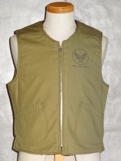 【TOYS McCOY】 アルパカウールライニングとコットン、およそB-10と同じころに製造されたであろうベストは公式な記録はありませんが、A.A.F.マーキングから察するに限定的に採用されたものでしょう。その現物を検証し、パッチポケットでアレンジして再現したのがこちらのベスト。B-10とのカップリングはもちろん、その他のアウターと組み合わせれば抜群の保温性を発揮してくれます。