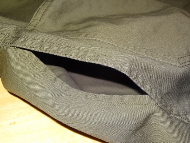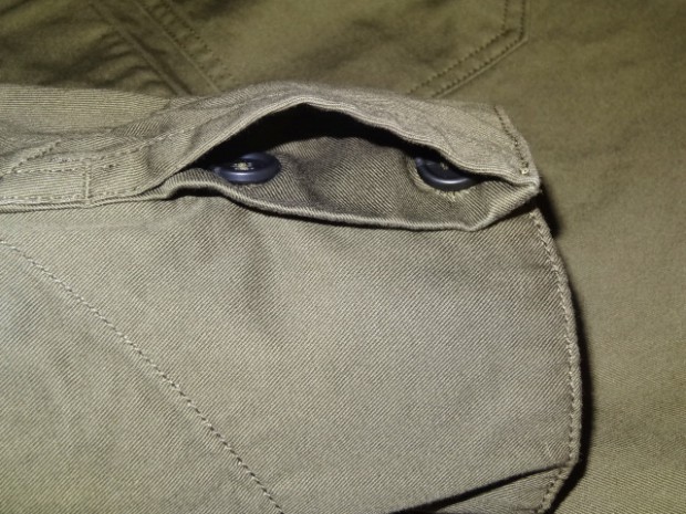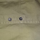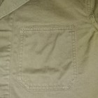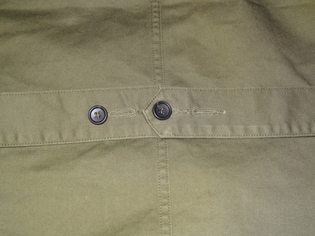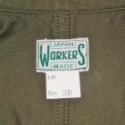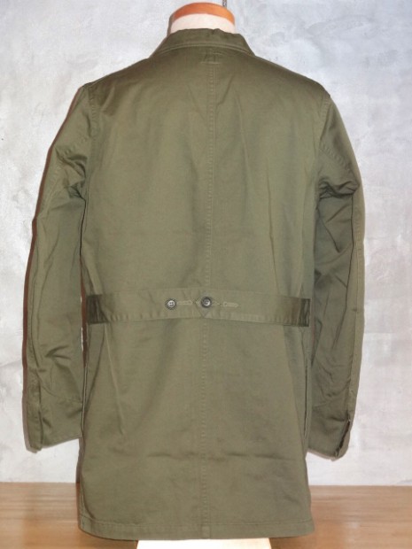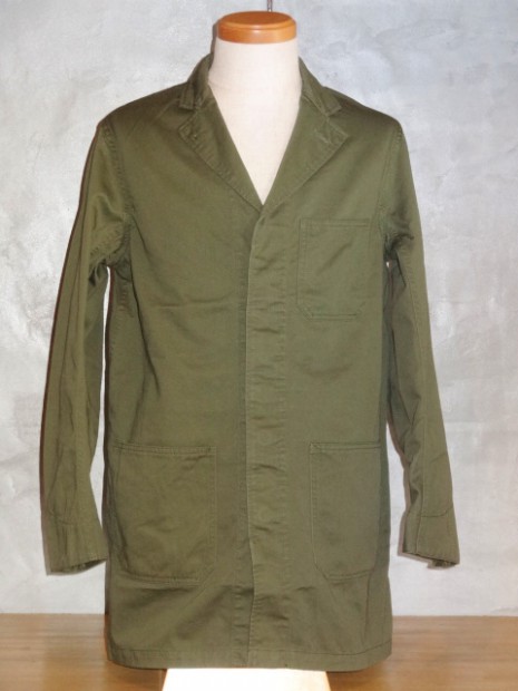 【WORKERS】 春先にがばっと一枚で羽織るショップコート。 型紙自体はほんのわずかに裾に広がったもの。それをバックにつけたボタンで絞ってシルエットが作れます。バックベルトにボタン・ホールともに複数あるので、何段階にもシルエットを変えることが出来ます。 脇には縫い目を利用した貫通ポケットがあり、コートを羽織ったままトラウザーズのポケットに手を入れられます。 着想はビンテージ、Sweetorrのショップコート。表面にボタンが出ない仕様。おそらく、もともとは作業しているときに着るショップコート。たとえば、車を洗ったり、整備したり。そんなときに金属ボタンで車を傷つけないように、そんな意味合いが合ったのだと思います。今回、ボタン自体はすべて練りボタンですが、ボタンを隠す仕様はフロント・袖口ともに残しています。 チノは8オンス。10オンスではちょっと重過ぎる、かといって5-6オンスは薄すぎる。バランスを考えて。 コーディネートは上下が同じ色目に成らなければ何でも大丈夫。オリーブ系なので、下がベーカーパンツ、軍パンのOD意外なら何でもOK。ジーンズ・チノ・グレー系のトラウザー、軍パンなどなど。 製品はOW済です。