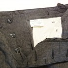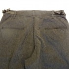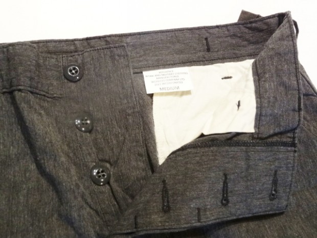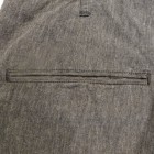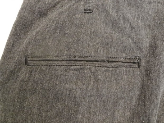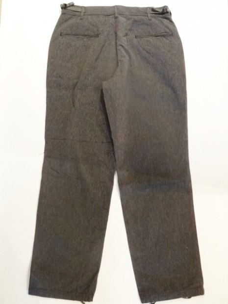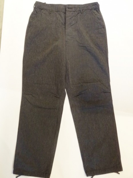 【WORKERS】 カタログ未掲載の新型パンツ。真夏用の涼しい軍パン型。 15SSで作ったFatigue Trousers、2016年のものすごく暑い夏に良く穿きました。私自身、自営業で服装は自由なので暑ければ短パン!となるのですが、これを毎日冷房の中で穿いていると体壊します。アラフォーですから。 「やっぱり丈の長いパンツは要るよな、かといってジーンズはつらい、チノパンすらも・・・」 そんな時に勝手に「5オンス系」と呼んでいたFatigue Trouserを履いてみると生地は厚すぎない。シルエットもゆったりで涼しい。でもしっかり、膝、くるぶしがカバーされるので体にも良さそう。 ジーンズが13.5オンス程度、チノ・ベーカーが10オンス程度で想像してもらうとわかります。5オンスというのはパンツを作るにはもっとも薄い部類の生地。ボトムは特に尻ぐりに負荷がかかりやすいので、5オンスの生地でタイトに作ると生地・縫い目に強度が足りません。(経験則から8オンスが限界) そこでこのゆったりとした軍パンシルエット。これならば、体を動かしても縫い目に負荷がかかりづらい。さらに、軍パンと言えばオリーブ色、脇のカーゴポケットがありますがこれをあえてやめました。もう少しシックに、どこでも着られるものになるように。一方、ベルトをしないでOKのウェストバックル、シルエットを調整できる裾の紐は残して、軍パンのシルエットや気楽に穿けるという部分は残しています。 この製品の目指すところ 「5オンスの薄い生地、ゆったりとしたシルエットで真夏用の涼しいトラウザーズ。ベルト無しでもはけるウェスト調整。ゆったりとしたワタリ・膝・裾は裾紐でシルエット調整可能。ミリタリーテイストでは無いシックな生地。」 として不要な要素は取り去る、必要な部分は残すといったデザインのやり方です。 素材は5オンスクラスのシャンブレー。杢糸(色糸と生成り糸をよった糸)を使っています。単純にグレーに糸を染めたのとは違う、表情のあるグレー色。 製品はOW済です。