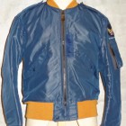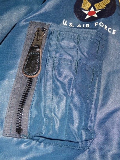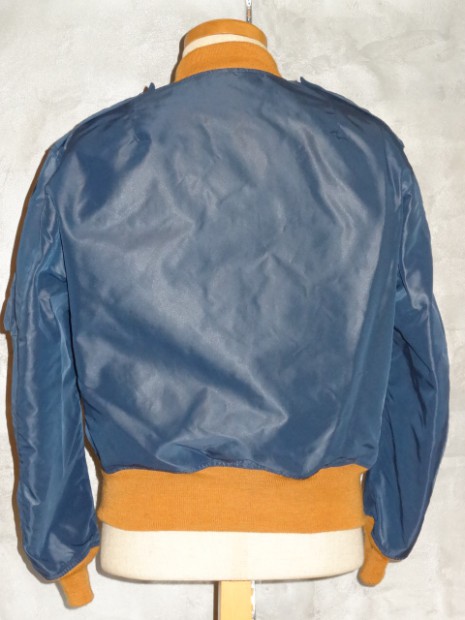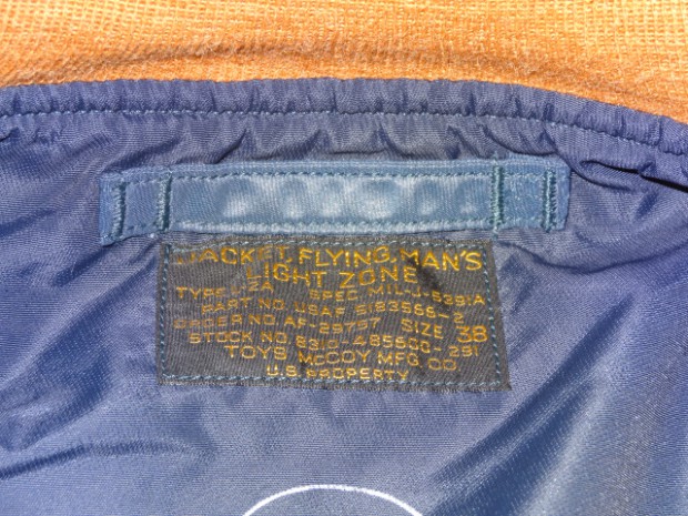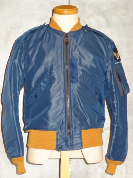 【TOYS McCOY】 1951〜1950年の、ほんの僅かな期間のみに採用されたエアフォースブルーのL-2A。飛行服の改変が急展開する同時期にはロットのブレなどによる、素材の褪色が著しいです。この復刻モデルはリブのみがオレンジ(カーキ)色に褪色してしまった実物サンプルを基にしたもの。当時の未熟な染色技術と混乱の時代における偶然の産物。マニアックなモデルをお届けします。