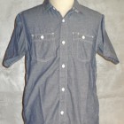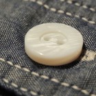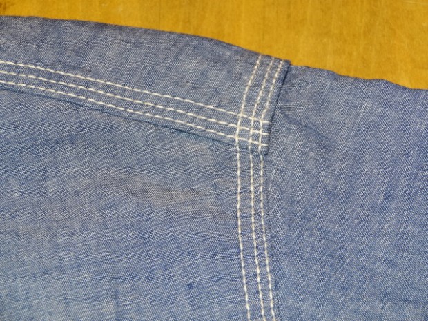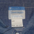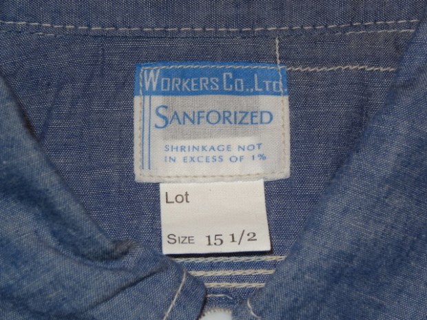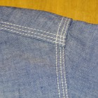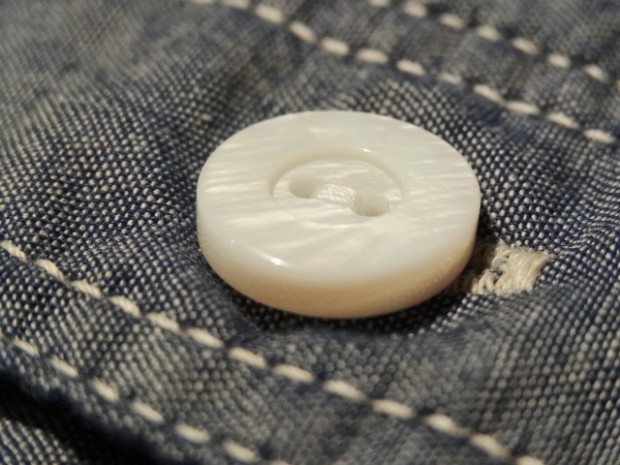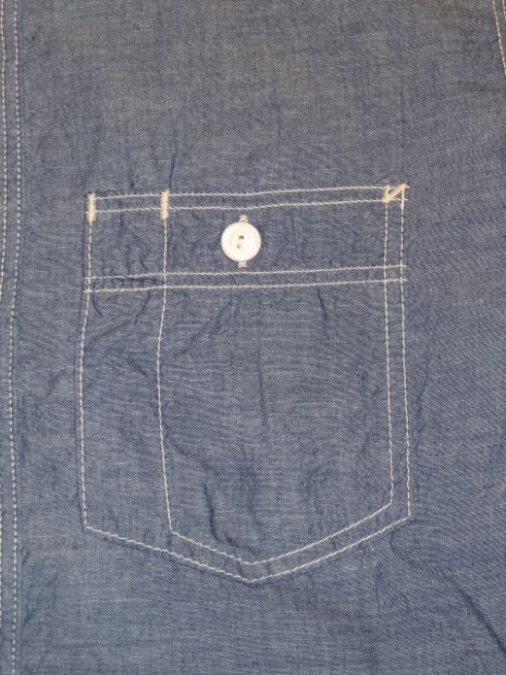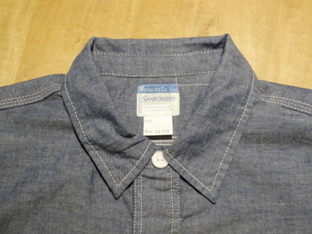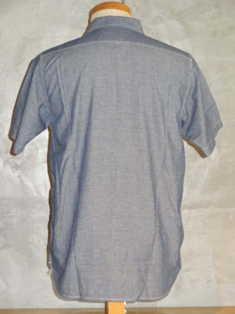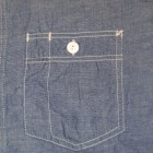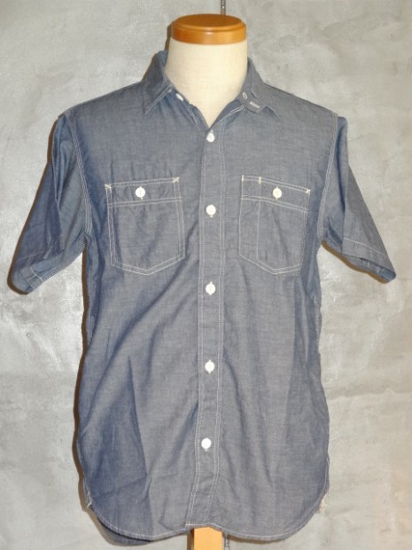 【WORKERS】 久々登場の半そでワークシャツ。 デザインは2ポケット+チンストラップ。半袖シャツはどうしても袖口がない分地味になってしまうのであえて仕様は多めに。ステッチも粗めでデザイン的に。 ボタンは淡水に生息する貝、RiverShellPearlで作ったもの。ワークシャツ専用に14ミリ、厚めで。13ミリでは小さい、15ミリでは大きすぎる。でも14ミリはボタンメーカーで作っていない。ということで、WORKERSで別注して作りました。 ブルーシャンブレーは40番糸、3.2オンスとライトなシャンブレー。WORKERS定番の4.5-5オンスクラスが20番糸なので糸の太さが約半分。 製品はOW済です。
