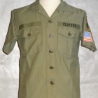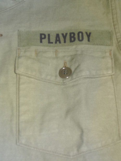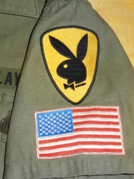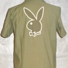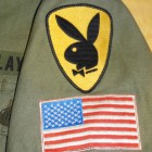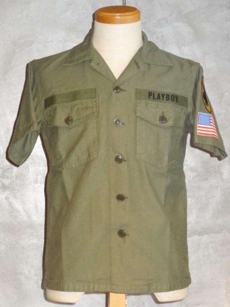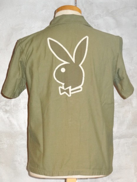 【TOYS McCOY】 アメリカの雑誌、プレイボーイのピンナップガール、プレイメイトがヴェトナムに駐留するアメリカ軍兵士のために慰問に訪れた際、着用したユーティリティシャツをイメージしました。忠実に復刻したショートスリーブの同シャツをカスタム。左肩には本作の為に新たに作成した刺繍製のプレイボーイパッチとスターズ&ストライプス、背面にはお馴染みのバニーヘッドがプリントされています。