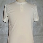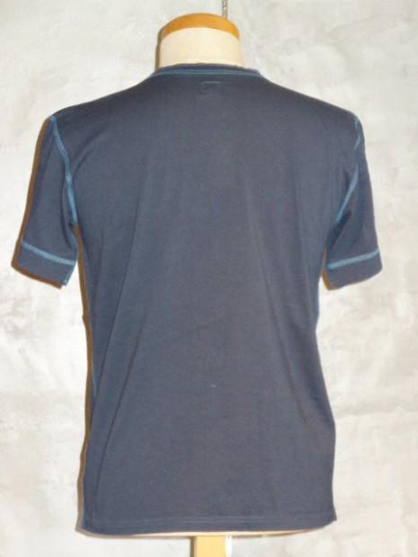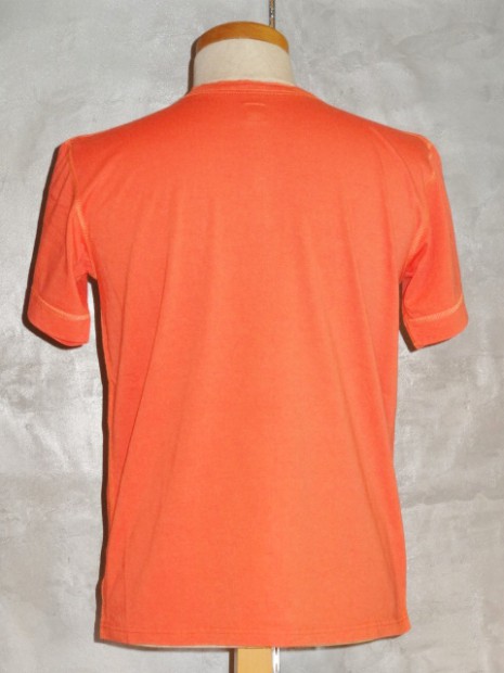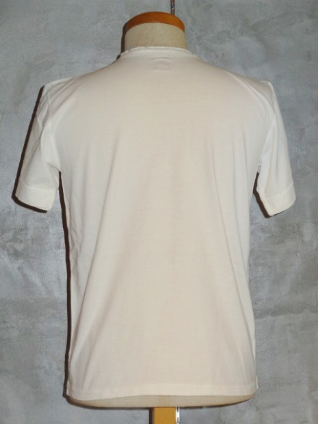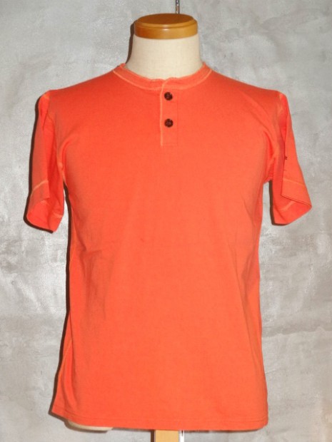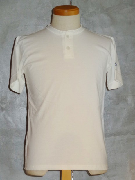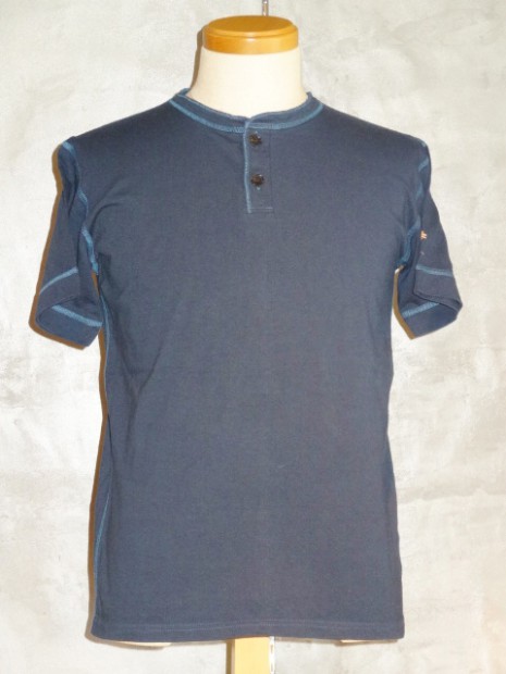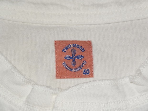 【TWO MOON】 ムラ感がありしっかりした、乾いた風合いの18/-ラフィ天竺を使用・二つボタンのヘンリーネックTEE。襟周りにあえてリブ素材を使用せずに同素材の橋をロック始末してボディのフラットシーミングステッチとバランスを取っています。 ラフでタフ。丈夫で洗うほど気持ちいTwo Moonの夏の定番TEEです。