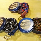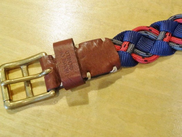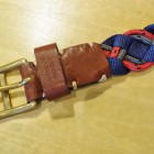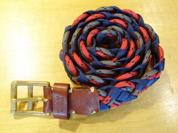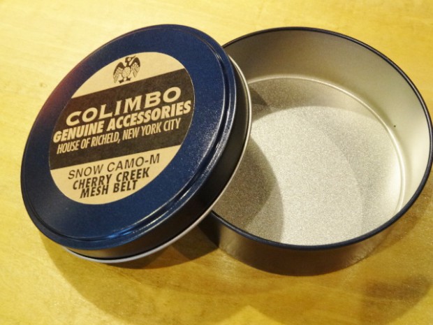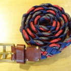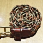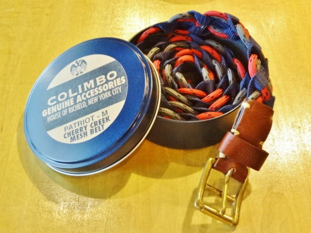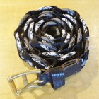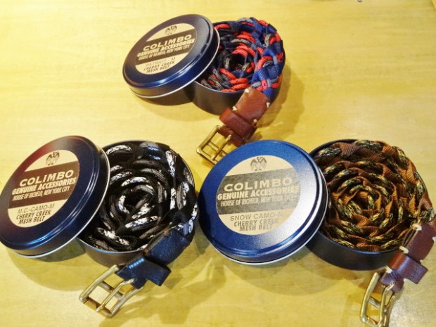 【COLIMBO】 異なる素材を組み合わせて編みこまれたメッシュベルトです。ソリッド・ブラス製のローラーバックルとレザーパーツを組み合わせています。2タイプのカモフラとシックなネイビー×レッドのバリエーションを揃えました。