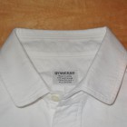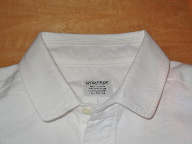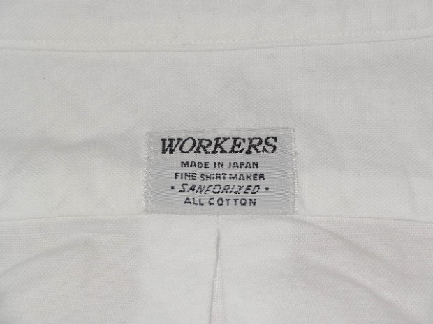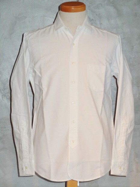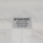 【WORKERS】 オックスという素材、どうしてもBDシャツがラインナップのメイン。以前から作ってみたかったのが、この素材でベー シックかつ現代的な「普通のシャツ」。今年は小襟の角を落とした、Narrow Round Collar を選びました。 シルエットはModified Fit。太すぎない身幅、長すぎない着丈。そして、肘である程度絞っているのですっきりと着るこ とが出来る、WORKERS ドレスシャツの定番シルエット。 フロントはラウンド始末、脇はマチありと少しクラシックなデザインに。素材は、Modified BDと同じ6.5 oz D-OX が3 色。ネイビーは17FWの新色。 コーディネート、ベーシックにジャケットの中に。羽襟先が短い分、ネクタイをするならば薄手の物を。襟先が短くばた つかないので、ネクタイをしないでタックアウトして着てもすっきりと見えます。シャツの上にボートネックのカットソー を着て、さらにマウンパやコートを着る。そんな組み合わせにもお勧めです。 製品はOW済みです。