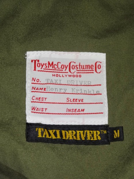 【TOYS McCOY】 映画『タクシードライバー』で主人公、トラヴィス・ビックルが後半に着用するM-65を徹底検証し、復刻を果たしました。タンカースジャケットに使われたものとはディティールが異なる【King Kong COMPANY】のパッチ、バランタイン議員のスローガン缶バッジに加え、アウターシェルと共地のポケットスレーキなど、ボディのディティールも再現。またラベルに記載された名は、劇中でシークレットサービスに語った偽名がタイプされています。