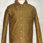 【COLIMBO】 1920年代、各国軍はWW1での経験を活かし様々なミリタリーウェアに適した素材の開発に取り組んでいました。冬季の冷たい外気から兵士を守る素材の研究も盛んで米軍はアルパカ・ウールライニングをライニング材に使用することで当時では最高のサバイバリティを実現し、積極的に導入を進めていました。本モデルは1942〜1943年にかけて、それまで支給していたショート丈のデッキジャケットに替わり艦艇搭乗員及び甲板作業員などすべてのネイバルクルーに配備された通称『N-1』と呼ばれるジャケットを再現しています。当初それまでと同様のネイビーブルーカラーのボディを採用していましたが程なくしてカーキ系カラーに変更されました。本モデルにおいてはボディカラーの入れ替わりの頃に並行して支給されていたカーキ・ドラヴ系モデルの最初期にあたり、色以外はネイビーバージョンのディティールを持っています。袖口まで貼られたアルパカウール、ウエストスピンドルを固定するループ。フロントのTALON#5ベル型ファスナーなど、初期モデル特有のディティールをモデルアップしています。 ファスナーのお取り扱いにつきましては差し棒が完全に差し込まれた状態を確認してからゆっくり引き上げるようにしてください。コットンヘリンボンテープを使用しておりますので、ムシ(ファスナーレール)に継続してストレスがかかると変形し開閉機能が不完全になる場合があります。選択はぬるま湯にドライ対応用洗剤を溶かして押し洗いを行ってください。専門店でのドライクリーニングもご利用可能ですが、その場合表面のパラフィン成分が若干早めに離脱していきます。