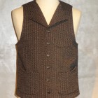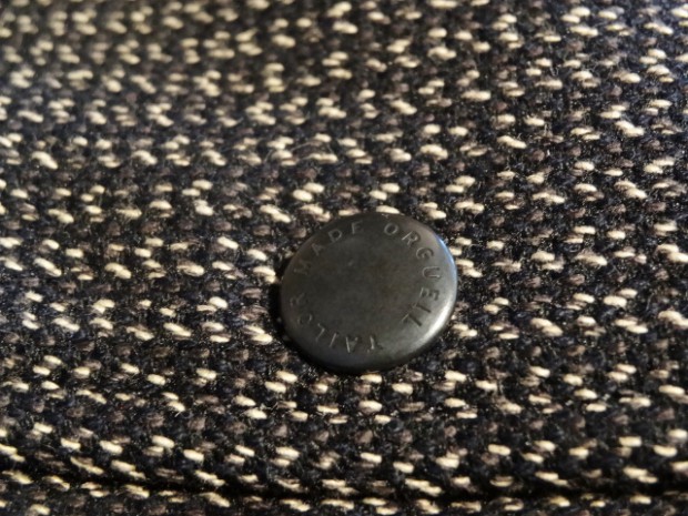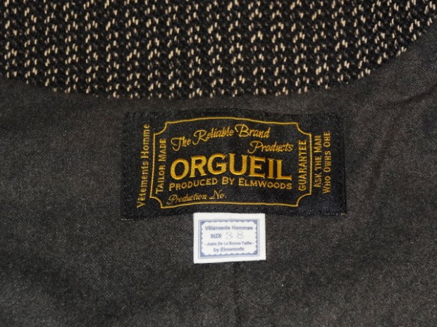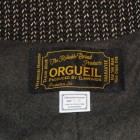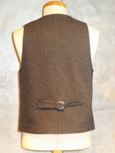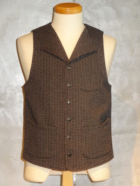 【ORGUEIL】 1900年代初頭に防寒の為に製作された厚手の杢調の生地ビーチクロス(ゴマシオ)。そんな目の詰まった厚手の生地を再現して制作されたベスト。着心地と保温性を兼ね備えました。身頃と一体になった外はねの襟、オルゲイユの刻印入りオリジナルボタン、背面のシンチバックなど1930年代のクラシカルなディティールにて仕上げられています。