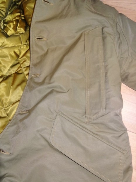 【COLIMBO】 WW2末期に冬用の飛行服として開発されたTYPE B-9をモチーフにN/C(ナイロン×コットンの混紡生地)と高性能ハイロフトマテリアルのPrimaloft Silver TMを組み合わせたハイブリッドタイプとして仕上げました。TYPE B-9はそれまで使用されていたTYPE B-3やB-6といったシープスキン製ガーメントに代わるべく研究されました。輸入に頼っていたシープスキンのストックが底をついた事、非常に高価な割に耐久性に難があった事はもちろんのこと何よりそれらのモデル以上の防寒性能と運動性向上を実現するために得た回答がTYPE B-9と姉妹モデルB-11でした。やや長い着丈と過度に絞られたウエスト、細かなアジャストが可能な一体型フードとチンストラップやミリタリーアパレルとしては珍しいハンドウォーマーなどの特徴はさらに洗練されたのち、N-3B型スノーケルパーカに進化していく事となります。本製品はややプリミティブなフォルムに隠された革新的なディティールを大切に、より機能的な混紡生地と中綿をお楽しみいただけるでしょう。お手入れは専門店によるドライクリーニングをおすすめします。ドライ対応用洗剤使用による押し洗いも可能ですが、ライニングにシミが残る場合がございます。また、乾燥機のご利用はお避け下さい。