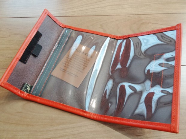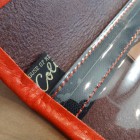 【COLIMBO】 植物鞣しのイタリアンカウハイドの床面をピグメントラッカーフィニッシュ、更にプリントを施したユニークナマテリアルを使用したライセンスフォルダーです。表面のラッカーはご使用時に徐々に剥がれて深い味わいに成長していきます。実際にライセンスをいれたまま長時間経過しますとレザーの油分などでシミの発生や移染などが発生する場合がありますので、紙製の許可証などは一旦ビニールその他に入れた状態で本体に収納することをお勧め致します。また氷点下などの寒冷な環境下においては本体窓分の透明パーツが硬くなり常温時に比べて破損しやすくなりますのでお取り扱いにご注意ください。 本体につきましては特にお手入れは必要ありませんが、トリム(外周部)には定期的なレザーコンディショナーやミンクオイルなどを薄く塗りこんで潤いをキープしてください。また、濡れてしまった場合は中の書類他を抜いた状態で自然乾燥させてください。