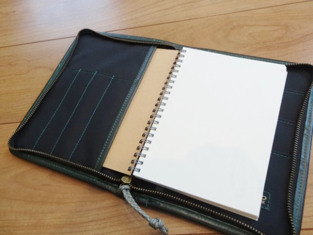 【COLIMBO】 植物鞣しのイタリアンカウハイドの床面をピグメントラッカーフィニッシュ、更にプリントを施したユニークナマテリアルを使用したノートカバーです。表面のラッカーは使用時に徐々に剥がれて深い味わいに成長していきます。 本体につきましては特にお手入れは必要ありませんが、トリム(外周部)には定期的にレザーコンディショナーやミンクオイルなどを薄く塗りこんで潤いをキープしてください。濡れてしまった場合は中のノートやペンを抜いた状態で自然乾燥させてください。