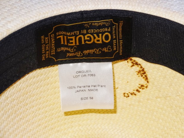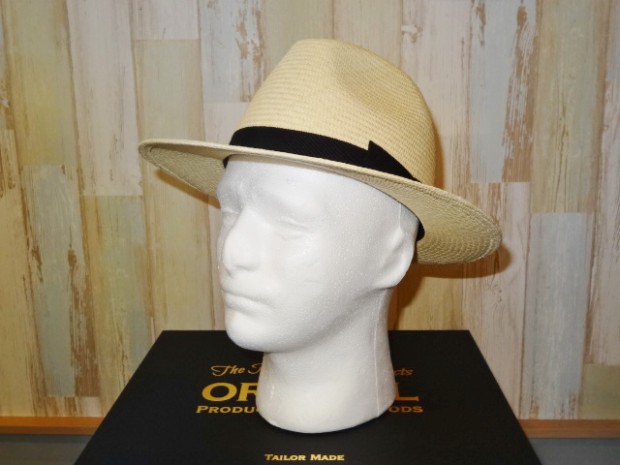 【オルゲイユ】 パナマハット 本パナマと呼ばれる南米、エクアドルのトキヤ草の質の良いモノだけを使い編み上げたアイテム。目が詰まって上品な光沢感がある網代編み。細かく丁寧な仕事ぶりをかいまみる事が出来る作品。すべり裏には、サイズ調整ベルトが付いているのも嬉しい。 オルゲイユオリジナルボックス付き。