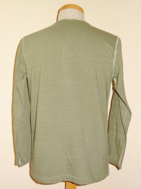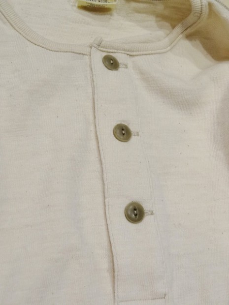 【トゥームーン】 no.20223 ロングスリーブ ヘンリーネック TEE 10/-ムララフ天竺を使用したロングスリーブヘンリーネックTEEシャツです。軽く柔らか、吸湿性にすぐれたカリフォルニアコットンが使用されています。10/-とTWO MOONで使用するには厚めの生地ですが、着心地は厚さ、重さを感じさせずふっくらとした安心感を与えてくれます。春夏のリラックスしたコーディネイトに合わせられるTEEシャツを考えて起用しました。ソリッドカラーの9分丈、ショートパンツや太めのコットンパンツなどとと合わせてお楽しみください。