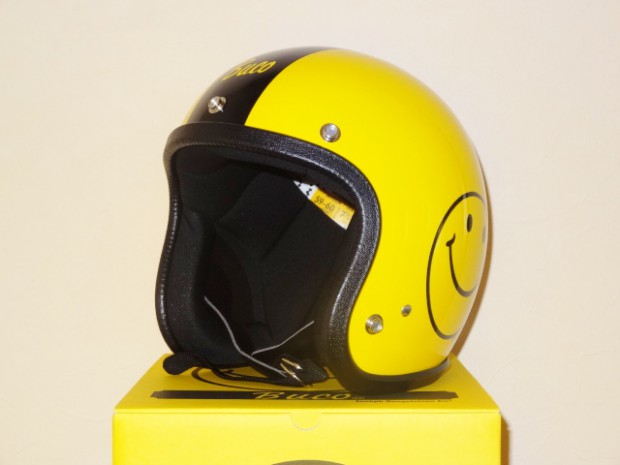 【トイズマッコイ】 スマイル ブコ ”イエロー” <ベビー・ブコ レイト 60's スタイル>は、シェル素材により弾力性と強度が高まり、帽体を大きくすることなく内径のSIZEを全体に1cmほど広げ、軽量化に成功しています。 世界的に有名な黄色い笑顔〈スマイリーフェイス〉は1963年末アメリカ、マサチューセッツ州ウスター市で、故「ハーベイ・ボール」氏により創作されました。 アメリカ郵政公社より記念切手が発行されたことがあるなど、1970年代アメリカのシンボルとして様々な商品にその笑顔が用いられました。1970年代当時の〈BUCO〉もヘルメットのデザインに〈スマイリーフェイス〉を採用。 こうして誕生した《スマイル ブコ》は、人々の心に平和と希望をもたらした商品の1つとして好評を博しました。 オリジナル同様、帽体の縁には米国トリムガード社製のものを使用。また今回はベーシックカラーである「イエロー」の他に、NEWカラーとして「マットブラック」もリリースいたします。 ★ 内装の発泡スチロールは、グレインスタイルで強度のある1ピース形状。 ★ メインストラップはナイロン素材、ストラップカバーはシボ(皺)付き合成皮革、後方のゴーグルストラップループはビニール素材を使用。の箔押しロゴマーク付き。 ★ 後方のゴーグルストラップループのボタンキャップ部には、のロゴマークが刻印されています。