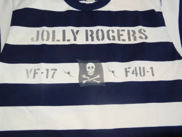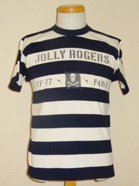 【トイズマッコイ】 ミリタリーボーダーTEE U.S.ネイビー”ジョリーロジャース” スカル&ボーンを用い、ジョリーロジャースの海軍航空隊で名乗った最初の部隊、VF-17.彼らが解散する際に、その名とマークはVF-61へ継承され、さらにVF-84へと受け継がれ、現在はVF-103がそれを護り続けています。伝統を守り続ける頑固な男たちをイメージし、後染めのボーダーTシャツにプリントしました。