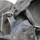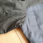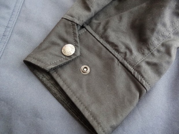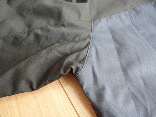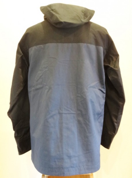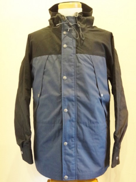 【ワーカーズ】 マウンテンジャケット 2-Tone A:トップブラック コットンベンタイルでマウンテンジャケットを作りました。 撥水性があり、でもコットンの経年変化も楽しめる素材。 今回のベンタイルは40 番双糸、つまり20番相当の糸を使って高道度に平織りしたもの。パリッとした風合い、ただ、 高密度かつ平織りなので針たちが悪い。たくさんステッチを打つとそこからさけてしまう。そこでボタンホールではなくスナップが機能面でも、デザインでも必要。 スナップを使うデザインで思い出したのが1980年代中盤に登場したあのデザインです。 そのまま作るのは面白くないのでデザインだけ参考程度に、型紙は新たに起こしました。 袖から前身・後身がつながって いるのがポイント。肩に縫い目がなくすっきりして見え、引っかかるものが何もない。その分、ゆとりは少し多めに入っ ているのでジャケットの上に最適。身頃の裏は表地に合わせてコットン生地の裏地、袖裏には滑りを考えてナイロンと箇所により生地を変えています。 この手のマウンパ(あえて今回はマウンテンジャケットとつけていますが)は、カジュアルにも、ドレスウェアの一番外 側にはずしでも合わせられるのが便利なところ。例えば、Maple Leaf Jacket, Trosuers でばりっと合わせた上に着れば、 シェルになり外気を防いで中に暖かい空気の層ができる。同じセットアップもBal Collar Coat を合わせるとかなりカチっ と見えるのがMountain Jacket だとカジュアルになります。 Mountain Jacketをさらにカジュアルに、ベーカーパンツ・ワークシャツ・クルーザーベストやデニムジャケットと合わせるのも。 このように、合わせるものを選ばない、それがマウンパ・マウンテンジャケットの良さです。