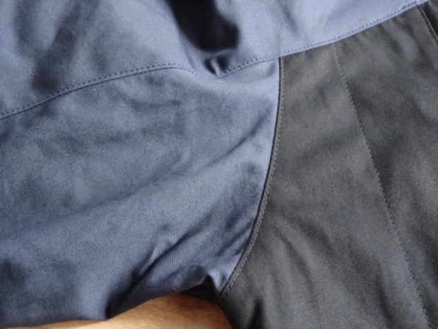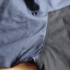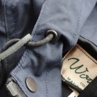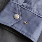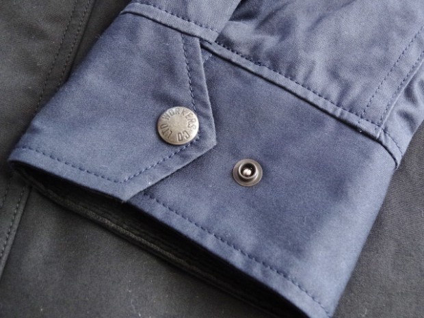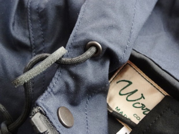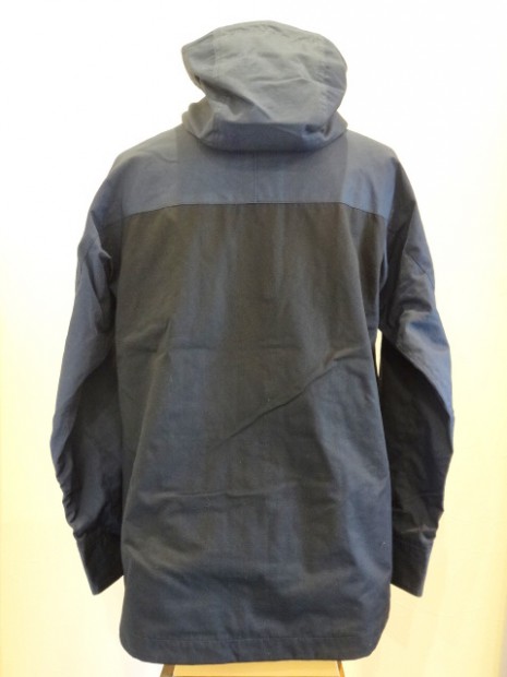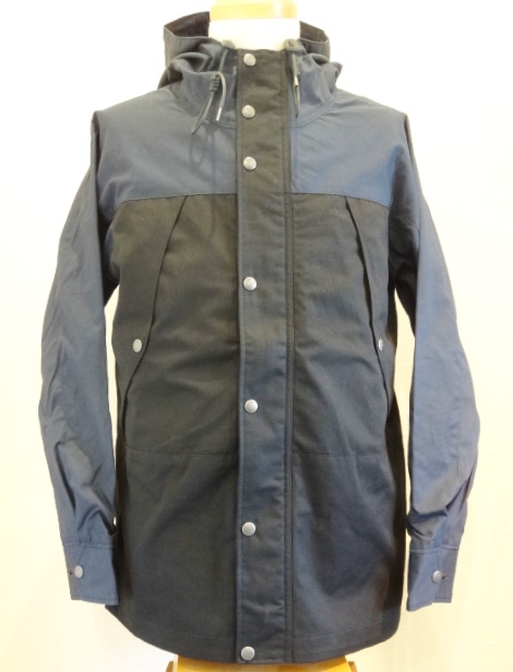 【ワーカーズ】 マウンテンジャケット 2-Tone トップ ネイビー コットンベンタイルでマウンテンジャケットを作りました。 撥水性があり、でもコットンの経年変化も楽しめる素材。 今回のベンタイルは40 番双糸、つまり20番相当の糸を使って高道度に平織りしたもの。パリッとした風合い、ただ、 高密度かつ平織りなので針たちが悪い。たくさんステッチを打つとそこからさけてしまう。そこでボタンホールではなくスナップが機能面でも、デザインでも必要。 スナップを使うデザインで思い出したのが1980年代中盤に登場したあのデザインです。 そのまま作るのは面白くないのでデザインだけ参考程度に、型紙は新たに起こしました。 袖から前身・後身がつながって いるのがポイント。肩に縫い目がなくすっきりして見え、引っかかるものが何もない。その分、ゆとりは少し多めに入っ ているのでジャケットの上に最適。身頃の裏は表地に合わせてコットン生地の裏地、袖裏には滑りを考えてナイロンと箇所により生地を変えています。 この手のマウンパ(あえて今回はマウンテンジャケットとつけていますが)は、カジュアルにも、ドレスウェアの一番外 側にはずしでも合わせられるのが便利なところ。例えば、Maple Leaf Jacket, Trosuers でばりっと合わせた上に着れば、 シェルになり外気を防いで中に暖かい空気の層ができる。同じセットアップもBal Collar Coat を合わせるとかなりカチっ と見えるのがMountain Jacket だとカジュアルになります。 Mountain Jacketをさらにカジュアルに、ベーカーパンツ・ワークシャツ・クルーザーベストやデニムジャケットと合わせるのも。 このように、合わせるものを選ばない、それがマウンパ・マウンテンジャケットの良さです。