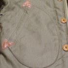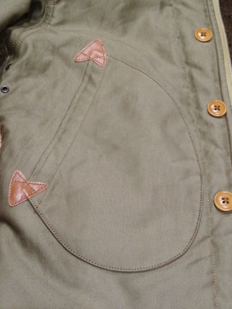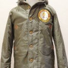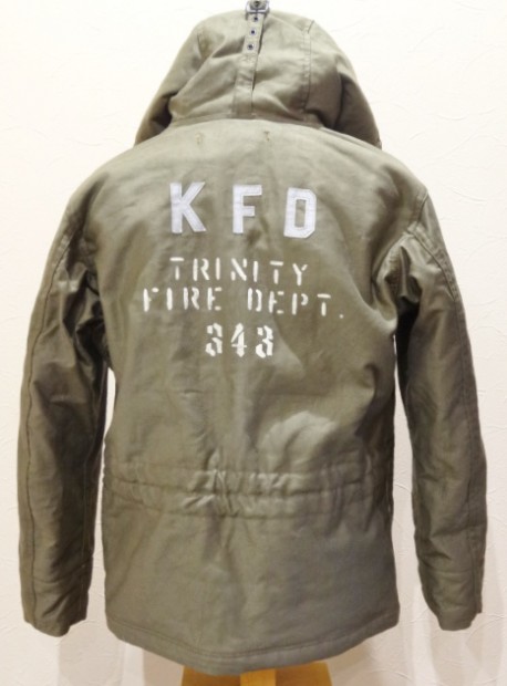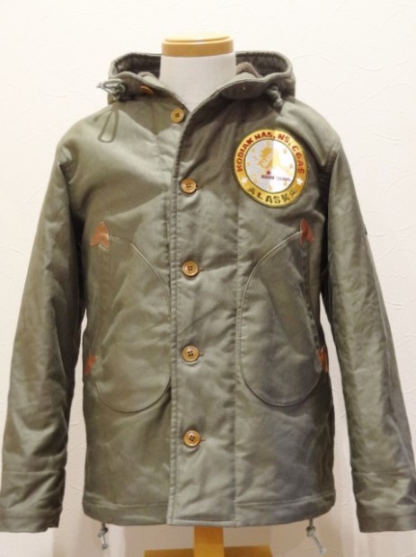 【コリンボ】 オリジナル オブザーバーパーカー カスタム 1920年台から各国軍はWW1での経験を生かし、様々なミリタリーウェアに適した素材の開発に取り組んでいました。冬期の冷たい外気から兵士を護る素材の研究も盛んで、米軍ではアルパカ・ウールをライニング材に使用することで当時最高のサバイバビリティを実現し、積極的に導入開始に至りました。本モデルはWW2当時のパーソナル・バーチャスモデルをベースに制作しており、その特徴的なフード周りのディティールや生産当時もあとからモディファイされていたことが多かったウエストのアジャスト機構などを余すことなく再現してあります。本製品に使用しているオリジナル高密度コットン・グログラン地は糊や毛焼きなどを行わないナチュラルフィニッシュとし、よりリアリティのあるエイジング効果を狙ったものです。カスタムはアラスカ・コディアック島のファイヤー&レスキューチームクルーの1着を再現。正面に複数機関が管轄する同島を表す刺繍パッチ、肩にはコーストガードFDパッチを、背面にはリフレクター(反射材)によるレターと油性ペンキによるステンシルを施してあります。 ※ TALONファスナーは必ず差し棒が一番奥まで差し込まれていることをご確認の上、ゆっくりと引き上げて下さい。クリーニングは信頼のおける専門店に御用命いただき、その際にはライニングにウール素材のパイルを使用している事と、ナットボタン(木の実を削り出して染色)が使用されている事をお伝えください。