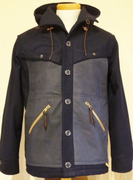 【コリンボ】 オリジナル フォレスター コート 古くからウッズマンやフォレストレンジャーに愛されて来たヘビーメルトン地のコートを再現。前後に配した大型のヨークは肩部を保護し耐久性を高め、気象状況の変わりやすいフィールドにおいて着用者をプロテクトします。そのヨークを生かし機能的に設置されたフロントポケット&ハンドウォーマーと背中側腰部のマップポケット、レザーで補強されたエルボーなど先人たちの知恵が結集したディティールは今なおアウトドアズマン達に支持されているといいます。本製品はモンタナ州で1970年台終わりまで生産を続けていたローカルブランドのオリジナルをベースに各部をリファイン、直線的なカッティングと機能性と剛性に主眼を置いたいわば【実直】なフォルムは素朴さの中に着る物を勇気づける逞しさも内包しています。表地とライニングの間に透湿性フィルムを仕込み、さらなる防風対策をとった重量感のあるボディですが、程よくソノウェイトを分散させるパターンにより製造されています。