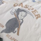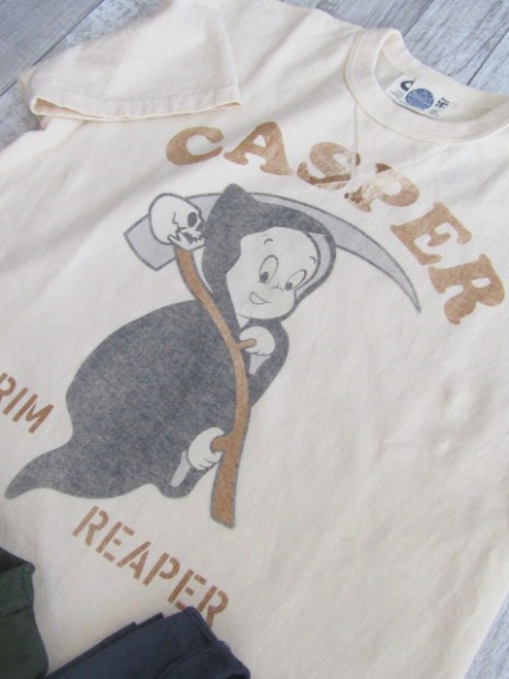 【トイズマッコイ】 ミリタリーTEE キャスパー " GRIM REAPER " 第173空挺旅団”SKY SOLDIERS”傘下の第74航空中隊は、別名『キャスパー小隊』とも呼ばれます。ヴェトナム戦争時に彼らが運営したヘリコプターの多くには、キャスパーのイラストが描かれていました。その実物の一つをピックアップし、新たに描き起こしたのがこちらのイラストで、黒いマントに鎌を担いだ死神の装束を纏います。ヘリコプターで強襲する彼らは敵にとっては死神、ということです。