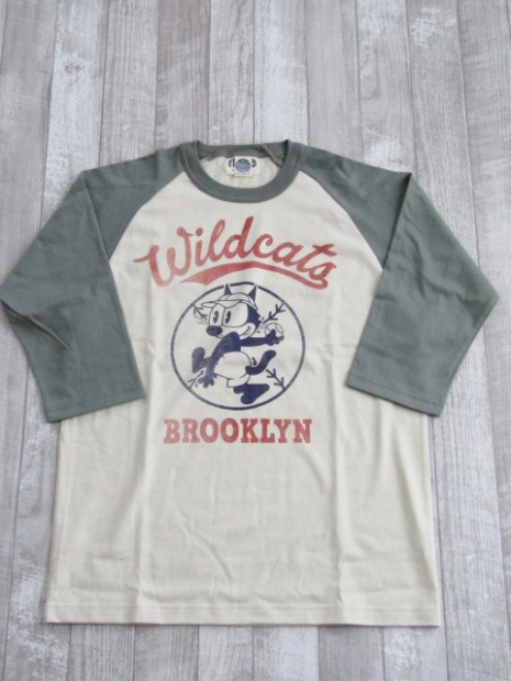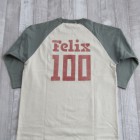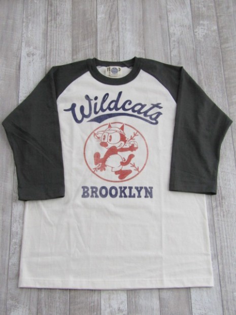 【トイズマッコイ】 クロップド ラグラン TEE フェリックス ザ キャット ”ワイルドキャッツ” FELIX THE CAT をマスコットとした、架空のベースボールチームのラグラン・ベースボールTシャツ。2015年にも同テーマでリリースされましたが、前回のバッターに対して今回はピッチャーで図案化されています。背番号の”100”はFELIX生誕100周年を意味しています。