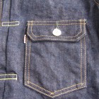 【ウエス】 2nd デニムジャケット 2ndタイプのデニムジャケット。定番デニムと同じ14.9ozの生地を使用しており、色落ちの美しさは既に実績があります。サイドパネル(両脇に5cm程度の生地をハギ合わせている)は、ビンテージジャケットにも見られるディテールです。胸ポケットが2つにサイドアジャスター。若干の違いですが、ファーストタイプとは違った魅力があります。ファースト、サードとは着丈や身幅も変えています。