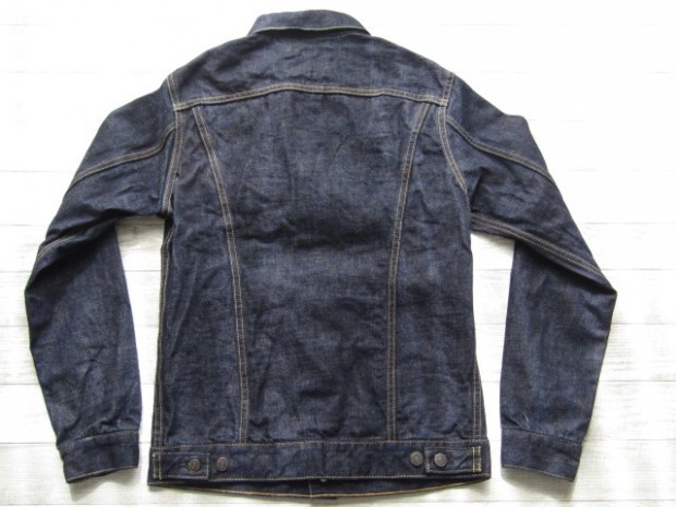 【ウエス】 3rd デニムジャケット 定番ジーンズと同じ14.9ozの生地を使ったデニムジャケット。後ろ衿の補強や、胸ポケットのフラップ裏、そしてポケット布に薄手のデニムを使用するなど、細部に気を配っています。試作を繰り返すことで、細めのアーム、体にフィットしながらも動き易いシルエットを実現しました。Tシャツの上からシャツ感覚で羽織ったり、冬場はコートのインナーとして着用したり、使い勝手の良いアイテムです。ジーンズで定評のある色落ちを、ジャケットでも体感してください。