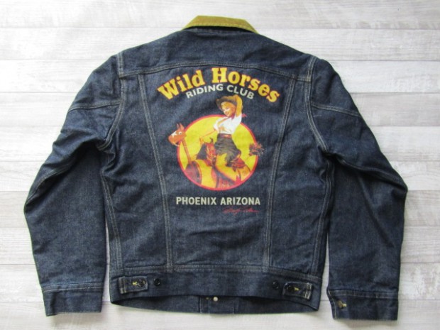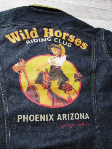 【トイズマッコイ】 LOT 001LJ デニムジャケット マリリン モンロー ”ワイルド ホーシズ” マリリン・モンローの遺作となった映画『荒野と馬』で、彼女はこれまでの印象とは異なるナチュラルな美しさを披露したが、その姿をより際立てたのは、デニムのセットアップだったことは間違いないでしょう。そんな彼女がビッグシルエットに羽織った、ブランケットライニングのデニムジャケットをイメージとしたカスタム。左胸に同映画の公開念い因んだ刺繍、背面には架空の乗馬クラブをイメージしたイラストをプリントしました。
