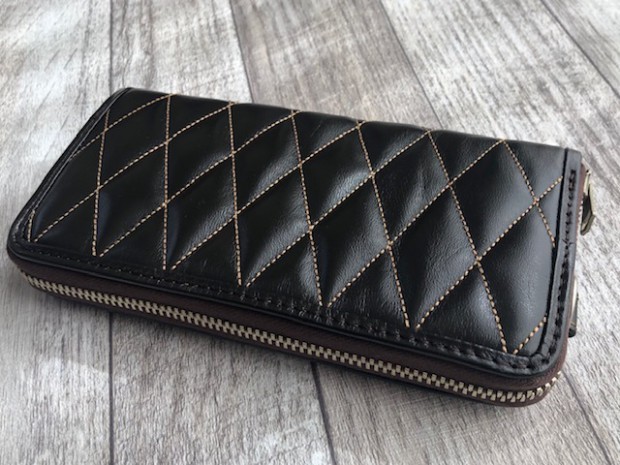 【トイズマッコイ】 レザー キルテッド ウォレット 上質なホースハイドをメインマテリアルとし、ダイヤモンドステッチを施したキルティングを前面にあしらったロングウォレット。収納力に優れているのでは言わずもがな、軽装で心許ない春夏の装いに、ガツンとインパクトを与えるアクセサリーとなります。