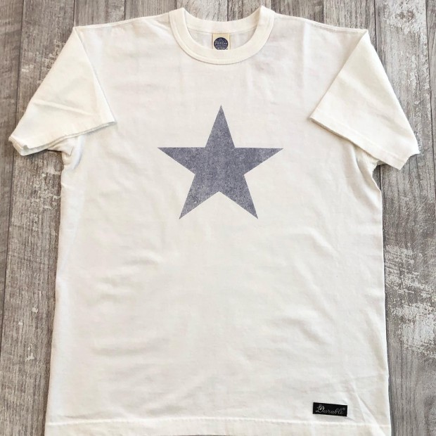 【トイズマッコイ】 デュラブル TEE ワンスター バイカー=ダブルライダースジャケット、のイメージを決定付けた映画『WILD ONE(乱暴者)』で、主役のマーロン・ブランドが着用したとされる伝説のレザーブランド”デュラブル”。そのブランドロゴとライダーズジャケットを象徴するエポレットの【ワンスター】をプリントしました。