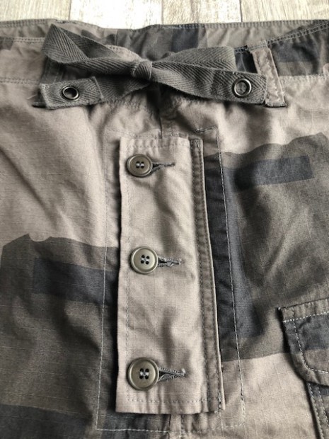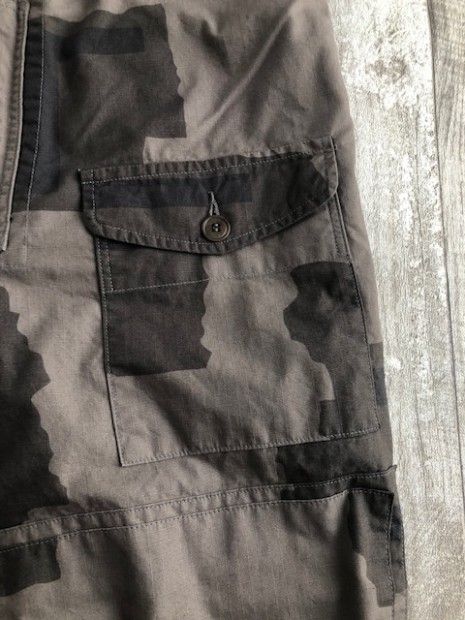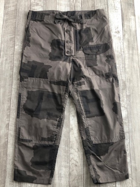 【COLIMBO】THE LORD WARDEN SMOCK PANTS 米海兵隊にて限定的に採用されていたT−PATTERN迷彩を使用した8分丈のスモックパンツです。リップストップ生地を採用して通気性を確保し、膝や臀部などには生地を重ねることによって耐久性も付与されています。ウエストにはサイズ調整用のスピンドルを内蔵。フロント左右にはスラッシュポケット、左腿にもポケットを追加して利便性が増しています。 夏場にピッタリのスモックパンツです。