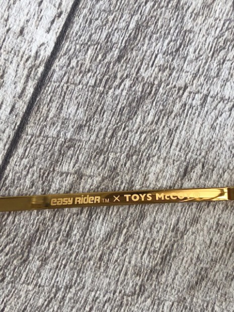 【トイズマッコイ】 イージーライダー バイカーシェード チタニウムスペシャル 図らずもピーター・フォンダを追悼する象徴となった、新開発のバイカーシェード。ご存じ映画『イージーライダー』でキャプテン・アメリカが掛けていたものをヴィンテージアイウェアに造詣の深い『日本メガネ』と共同開発。フォンダが手で曲げて自分の顔幅に合わせたり、フレームとレンズの異なるカーブに苦労したなど、映像を解析したことで発見した事実も踏まえ新たに金型から制作しました。素材はアレルギーフリーのチタンを使用しています。
