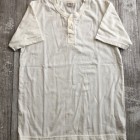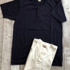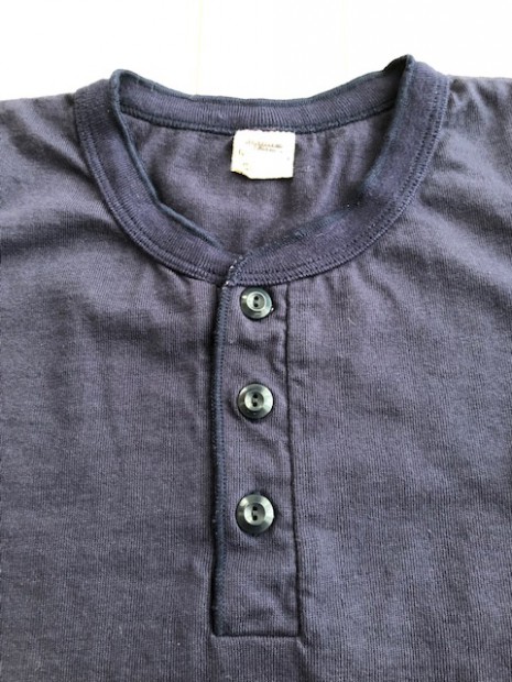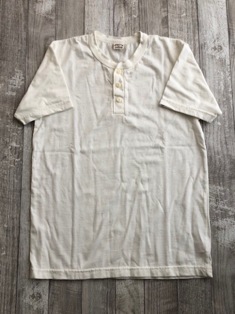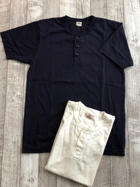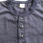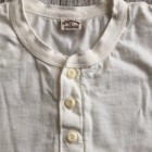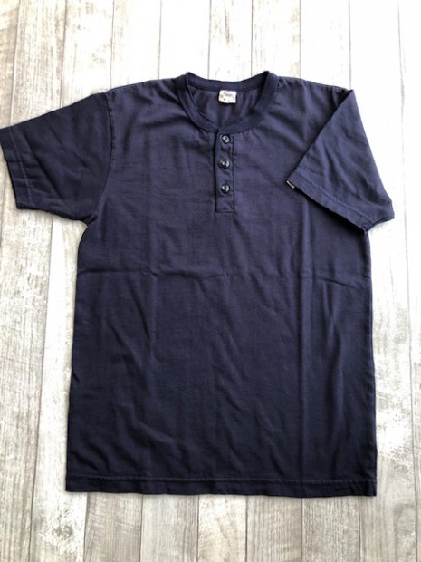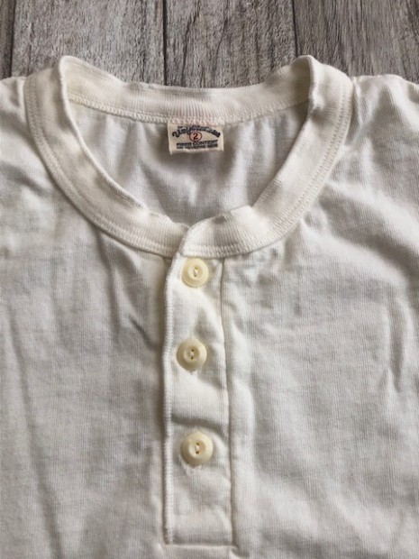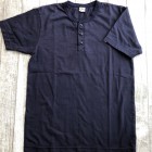 【ウエス】 ラマヤーナ ヘンリーネック Tシャツ 超高級綿素材のSUVIN(スビン)を太番手の糸にアレンジしたものをラマヤーナと呼んでいます。一般的に、スビンのような繊維の細い高級素材は細番手の糸にすることが多いのですが、UESらしい厚手の天竺生地を作るために、あえて別注で太い糸に紡績しました。繊維長や繊維の太さは最高級の海島綿に負けない性質を持っています。そのため、着用すると肌触りの滑らかさに驚かされます。素材の良さを明確に感じることができるラマヤーナ天竺を是非体感してください。 66RRは、ベーシックなヘンリーネック仕様。縫製は、二本針オーバーで伸縮性を損なわないようにしています。耐久性とデザイン性を考慮して、特殊形状の尿素ボタンを採用しました。生地の糸の太さは14番と、丸胴無地Tシャツより太い糸を使用しています。しかしながら、滑らかでしっとりとした肌触りは、ストレスの無い着心地で、生地の厚みを忘れさせます。生地の斜行を抑えるために度詰めで編んでおり、耐久性にも優れた製品です。