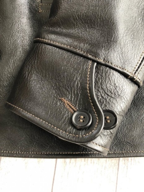 【トイズマッコイ】 マックヒルレザー レザーカーコート 2011年に発表し、瞬く間に完売してしまったホースハイド製カーコートがシルエットをタイトにアレンジして再降臨。バッファローホーンを削り出したボタン留めのフロントやストレートヨーク、両玉縁のポケットなどシンプルなプロフィールゆえインナーやボトムス、ヘッドギアに至るまでアイテムを選ばないオールラウンダーです。ミリタリー以外に選ぶべきアウター候補の最右翼といえるでしょう。
