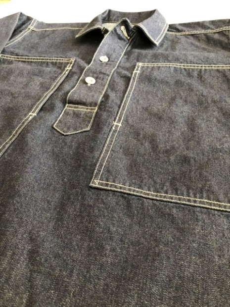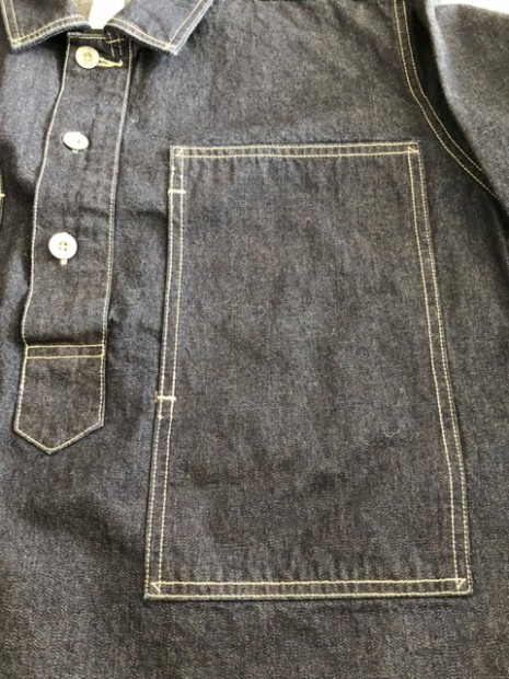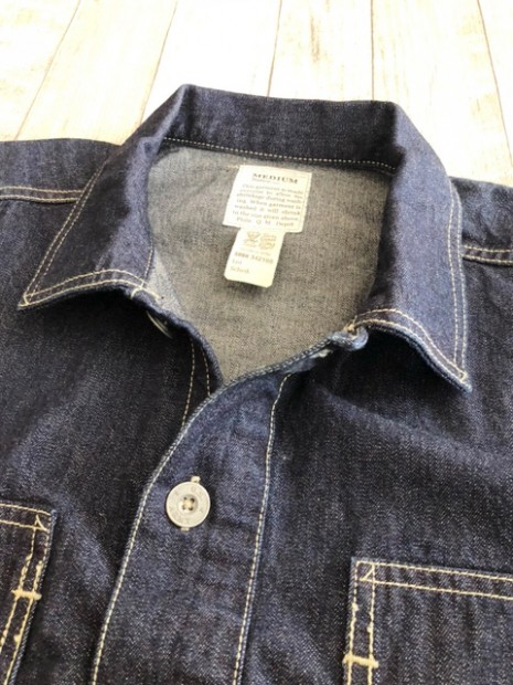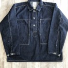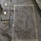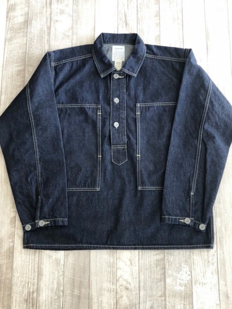 【コリンボ】 S.R.ギャリソン アーミー デニム ブラウス 黎明期のアメリカ陸軍ユニフォームとして正式採用されていたデニム製プルオーバーは1935年以降それまでのカーキカラーからブルーデニムに変更し、戦闘を除く屋外活動での汎用作業着として支給を開始、前線に於いても各種エンジニアなどの支援部隊で着用されました。WW2以降は前開きのカバーオールスタイルに変更されましたが、それまでのストックは変わらず汎用作業着として支給され、特に大戦末期になるとそれらの古着も含めて戦争捕虜収容所や軍の刑務所などでの作業着として同型の民間衣料と併せて各地の施設で利用されたといわれています。シンプルな構造ではありますが、そのパターン概念は時代性を反映したクラシックなもので1940年代以降のミリタリーウェアなどと比較しても袖付けや身頃の身体へのフィッティングなどが大きく異なります。本製品でもそれらの独特なフォルムのテイストは残しながら再現しました。セルビッチデニムのフェーディングとホワイトステッチのコントラストをお楽しみください。