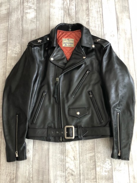 【トイズマッコイ】 デュラブル コード33 ダブルライダースジャケット ヴィンテージのCODE33を忠実に復刻したプレーンモデルをリリース。星形スタッズは古着同様にツメで留める方法が用いられ、WILD ONEのモデルとは差別化を図っています。着込んでいくことでヴィンテージのようなエイジングが楽しめるホースハイドをメインマテリアルとし、フロントファスナーには希少なデッドストックのクラウンファスナーを採用しました。ようやく長年の夢が叶った一着と言えるでしょう。