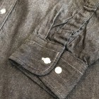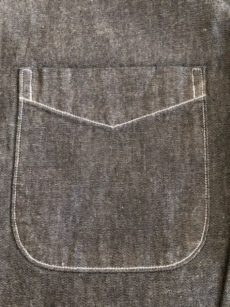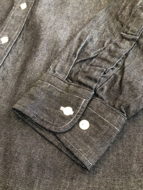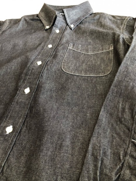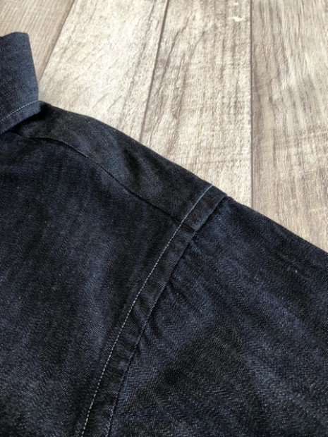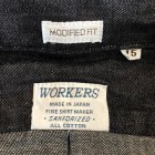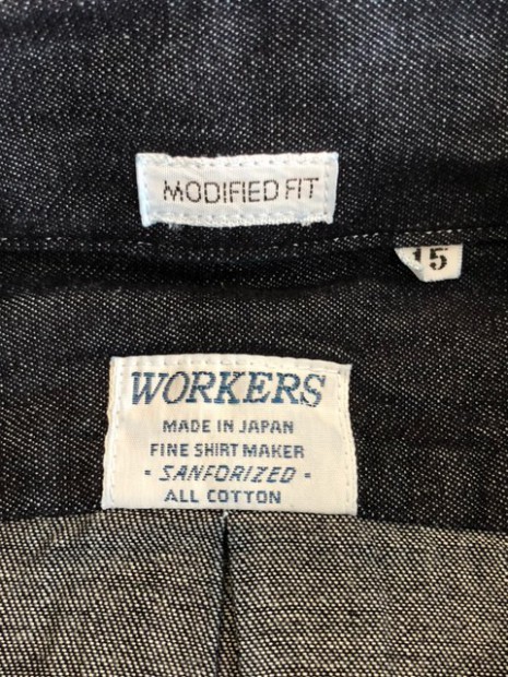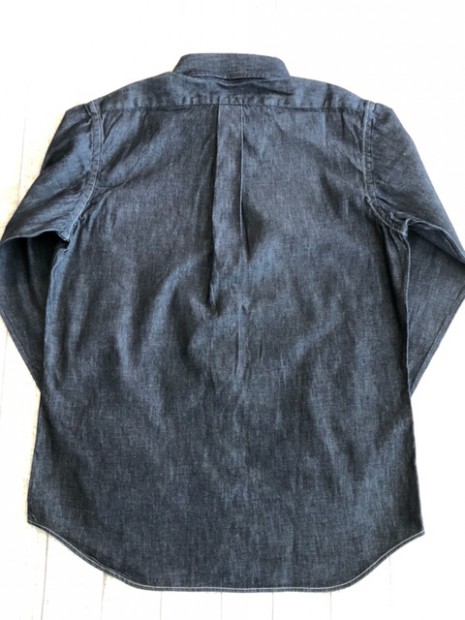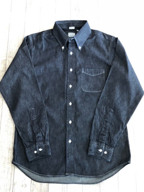 【ワーカーズ】 デニム モディファイド BD インディゴ ワンウォッシュ 数年ぶりのデニムボタンダウンシャツ。といっても調べたら前回は2014 年あの時はまだ、タイト&ショート気味だった時代。あれから時を経て、本来の「シャツらしいフィット」になったModified Fit で作りました。 6 オンスのデニム。これ以上厚いとシャツにはちょっとごつすぎる。でも、これ以上薄いとデニムというよりツイルに感 じてしまう。ギリギリのオンス。この生地が好きで、以前1 Tac Trousersで使い自分でもかなり穿き込みました。ボトムでも使える強度があるのでシャツならより長持ち。織糸は13 オンス系のように太く無いので、ほぼ糸の芯まで染まっ ています。それがかえって「色は落ちるけれどジーンズのようには激しく濃淡が出ない」。結果、色落ち具合が他の服と 合わせやすい。