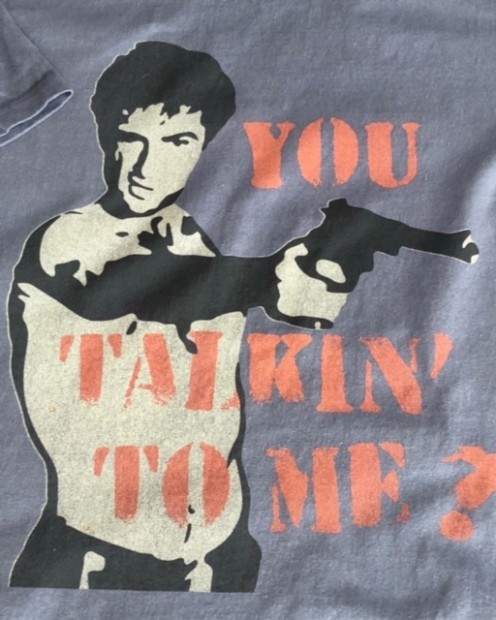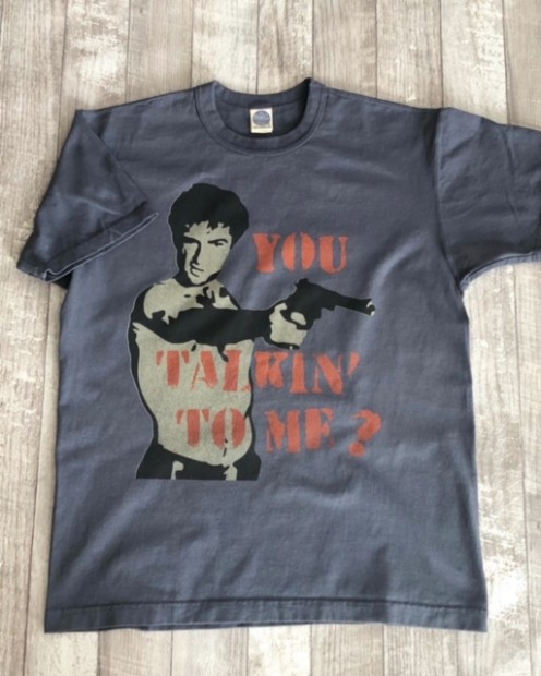 【トイズマッコイ】 19”NY”76 TEE ”YOU TALKIN‘ TO ME?” ビックルが鏡に向かってつぶやくセリフはマーティン・スコセッシとデ・ニーロのエンプロ=即興であったが、狂気へと落ちていく男の心理を表現する名台詞としてアメリカン・フィルム・インスティチュートが『アメリカの名台詞ベスト100』の10位に位置付けられています。