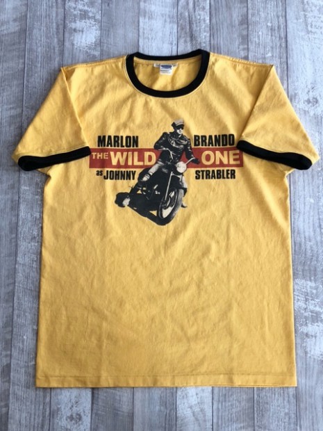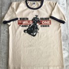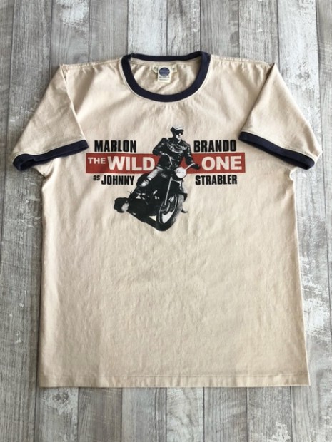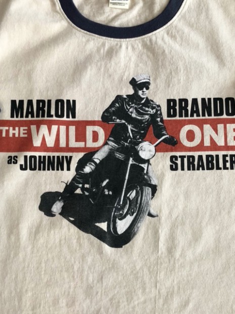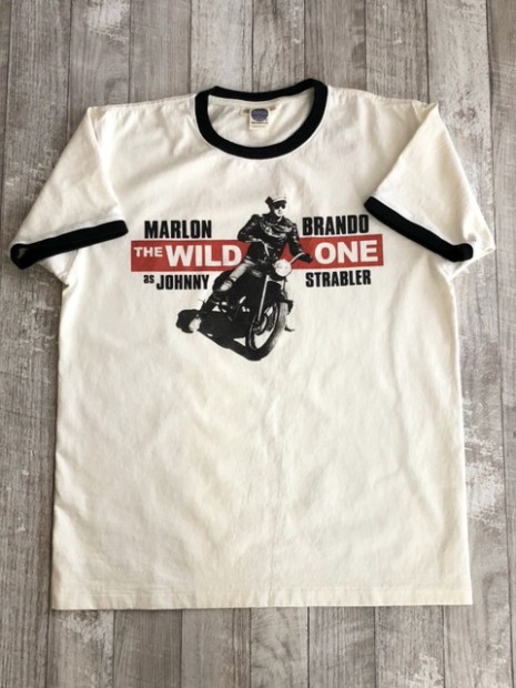 【トイズマッコイ】 ジョニー リンガーTEE ”ジョニー ストレイブラー” 1953年アメリカで『THE WILD ONE』が封切られた当時の広告ビジュアルを採用したTシャツ。背面にはマーロン・ブランドが着用したDURABLEのワンスター、そして映画の冒頭で大人に成長した主人公、ジョニーが過去を回想するナレーションの一節を添えました。ベースTシャツもマーロン・ブランド扮するジョニー・ストレイブラーを彷彿させるリンガーTシャツとしました。